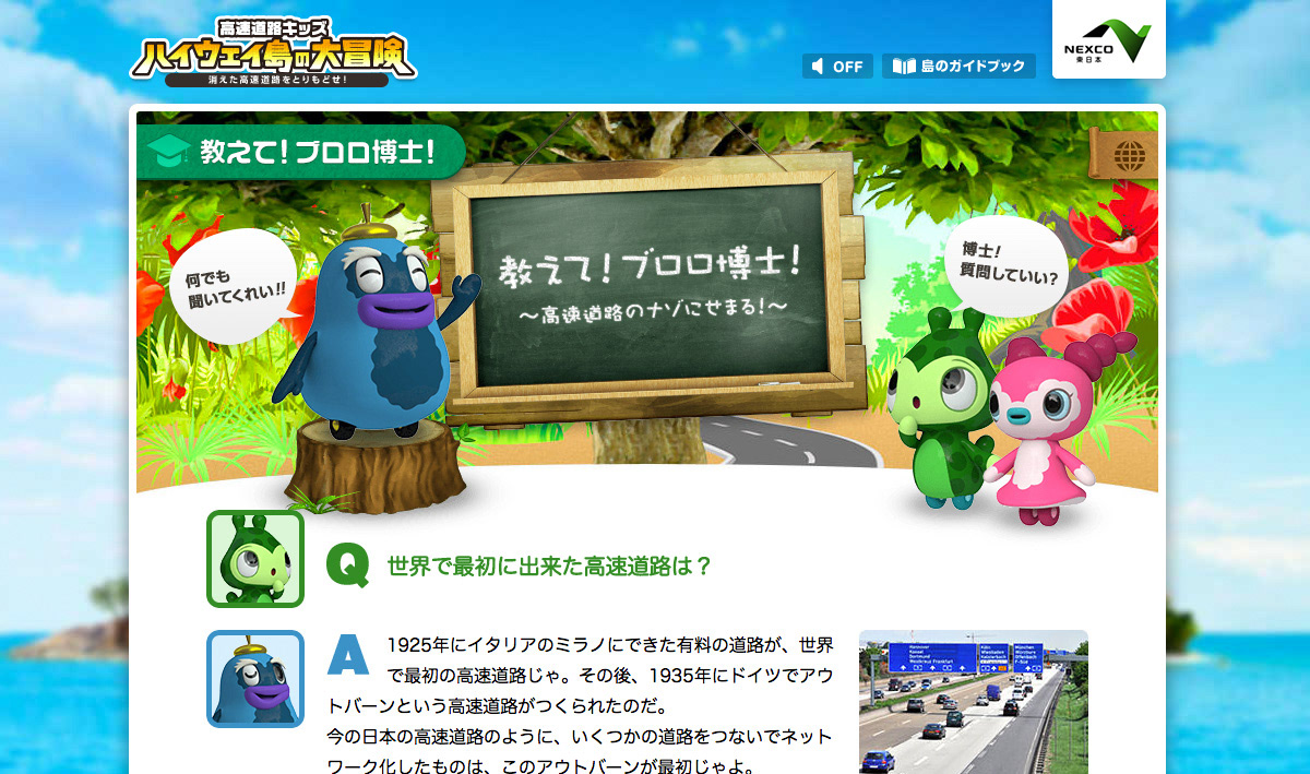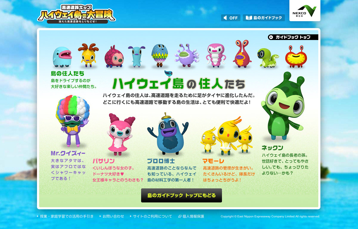 NEXCO東日本「高速道路キッズ ハイウェイ島の大冒険」のキャラクターデザインとアニメーション