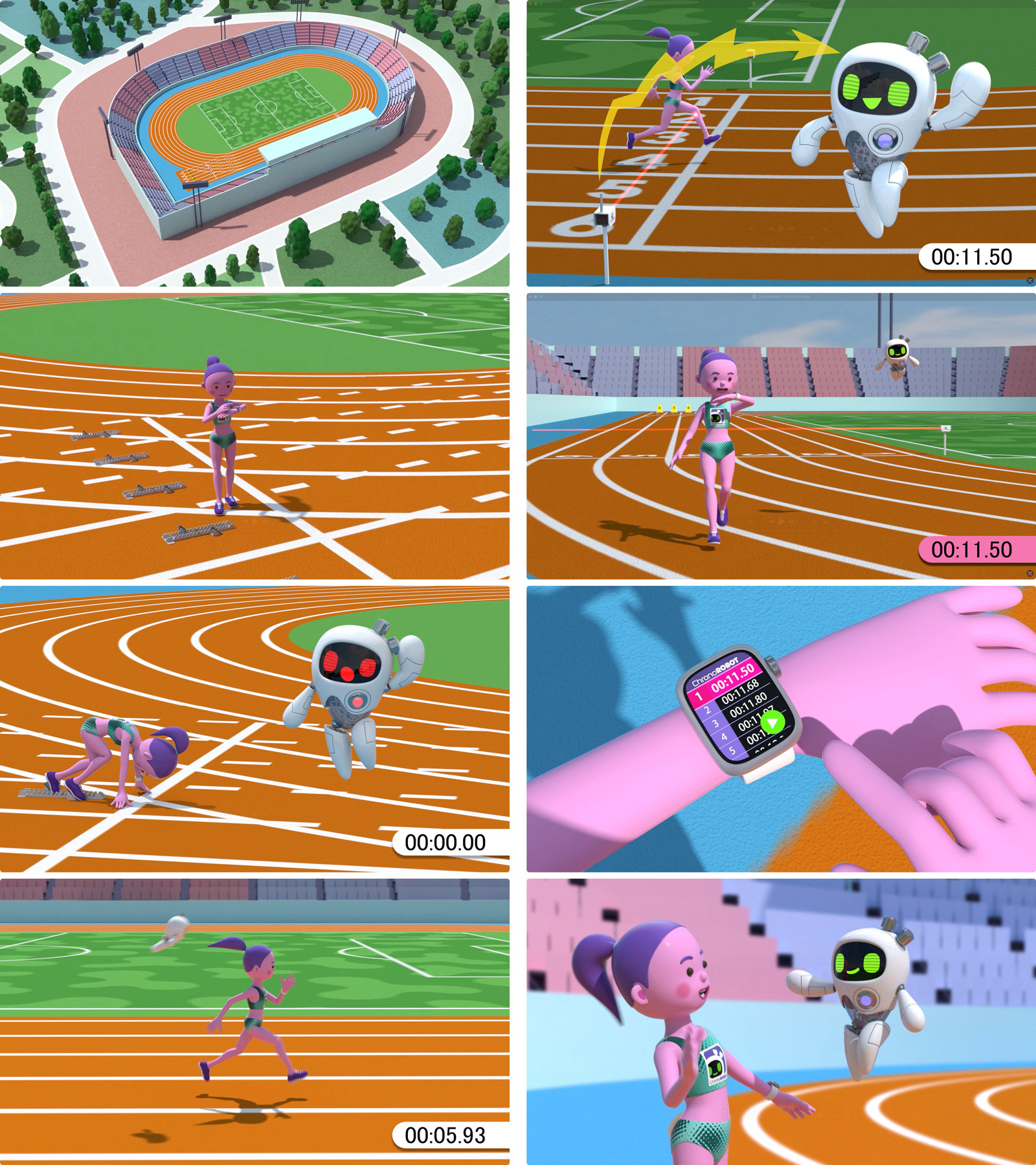 スポーツ計測システム「ChronoROBOT」、キャラクター、ロゴ、アニメーション